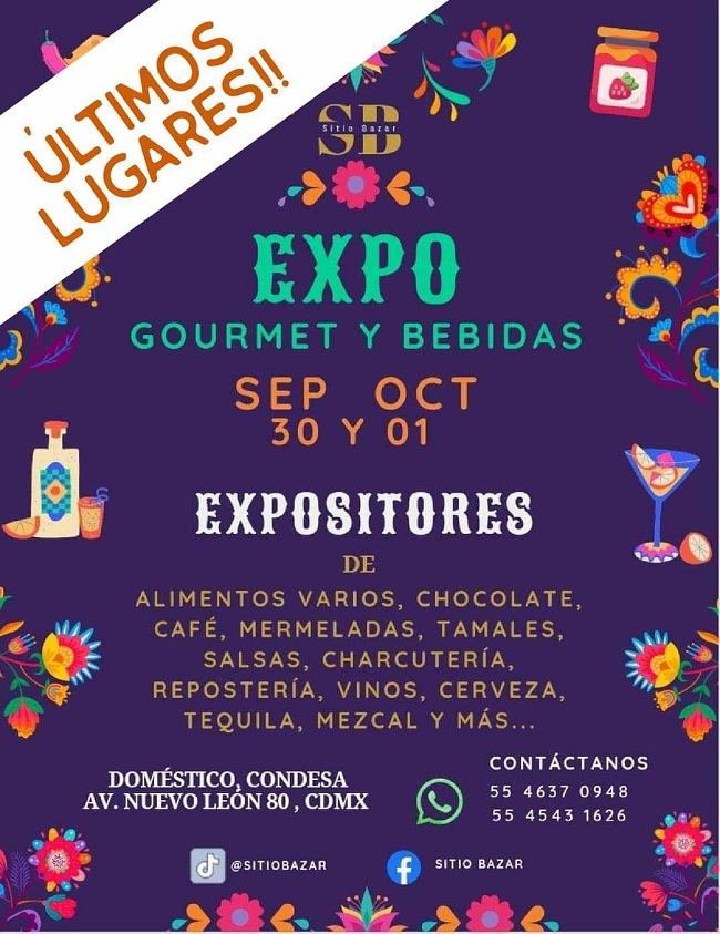 CDMX, 25 de septiembre de 2023.- Con el fin de apoyar el emprendimiento mexicano e internacional en el mundo de la gastronomía y las bebidas, Sitio Bazar anunció la realización de su primera Expo Gourmet y Bebidas en la capital del país, la cual reunirá a alrededor de 60 negocios de emprendimiento del mundo gourmet y bebidas de nuestro este próximo fin de semana.
