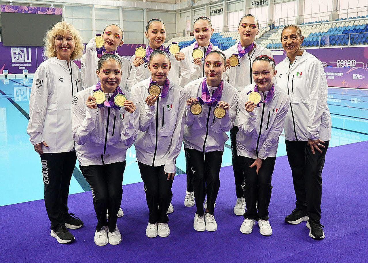 En tanto, en la categoría de equipo mixto de natación artística, donde compitieron las mexiquenses Camila Argumedo Gómez, Daniela Ávila Villa, Carolina Arzate Carbia, Fernanda Paola Carmona Vázquez y Nayeli Mondragón Acevedo, aportaron una medalla más de oro tras registrar 194.9850 puntos.