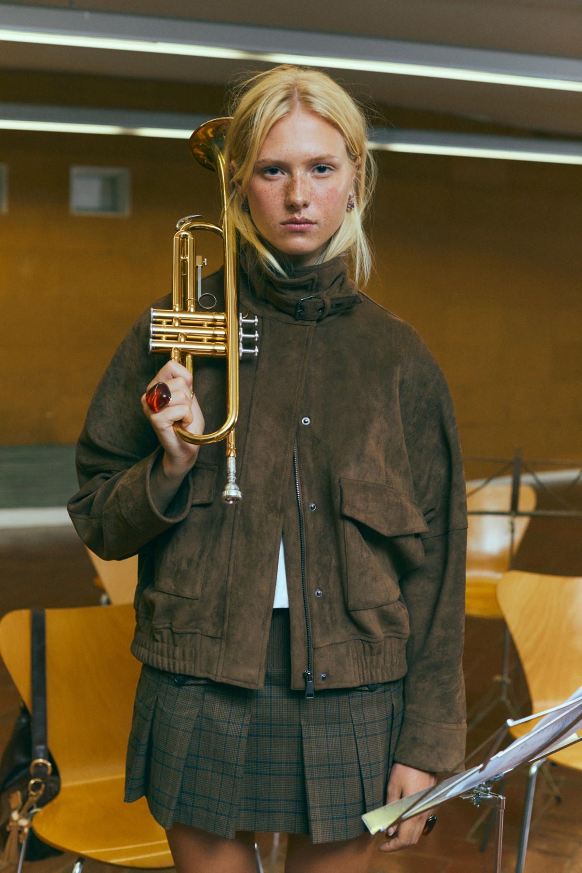 La colección AW25 de Stradivarius recupera clásicos del armario como las chaquetas enceradas y las de doble textura, sin olvidar la icónica bomber, con silueta efecto globo, que se consolida como la prenda estrella de la temporada. El estampado de cuadros aporta ese toque preppy irresistible, y la minifalda cobra gran protagonismo. Leggings y botas son la dupla que pisa fuerte tanto dentro como fuera de clase.