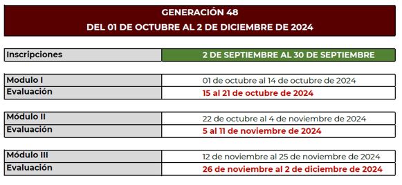 El calendario de la Generación 48 es el siguiente: