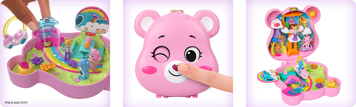 Ya sea como regalo, colección, o simple guiño al pasado, esta colaboración tiene un lenguaje universal. Para quienes conocieron a Cheer Bear en VHS y a Polly Pocket en cajas metálicas, o quienes los están descubriendo por primera vez en una repisa colorida.