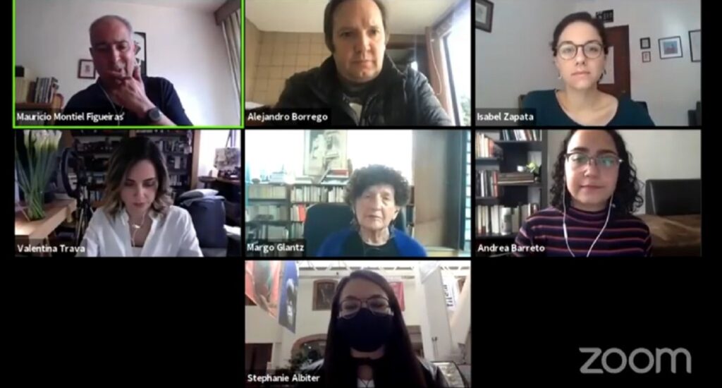 Valentina Trava inició preguntando a las participantes “¿Cómo es que ha cambiado a partir de la pandemia toda su dinámica enfocado al tema de los libros y la lectura?”, a lo que Margo Glantz respondió: “Me he exigido una disciplina muy estricta para poder sobrevivir, la cual incluye una serie de actividades entre ejercicios, caminar, escribir y leer todas las mañanas, también he realizado diálogos sobre la enfermedad y cautiverio”.
