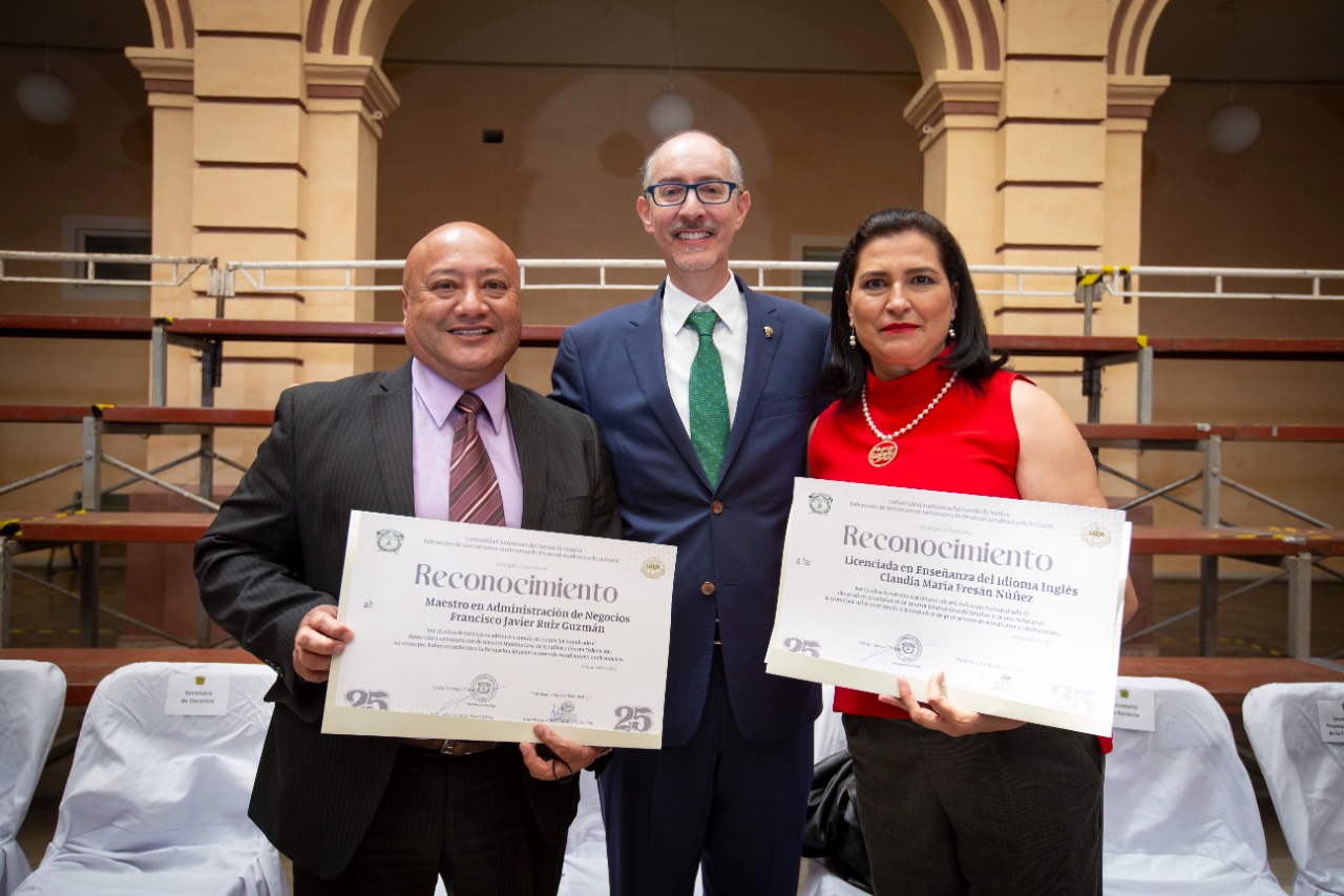 En el acto fueron entregados reconocimientos por 25 años de servicio a 66 miembros del personal docente; por 30 años a un total de 73, así como, nueve más por 35 años de trayectoria. Cabe hacer mención que 10 maestras y maestros accedieron a la Presea FAAPAUAEM al Mérito Gremial.