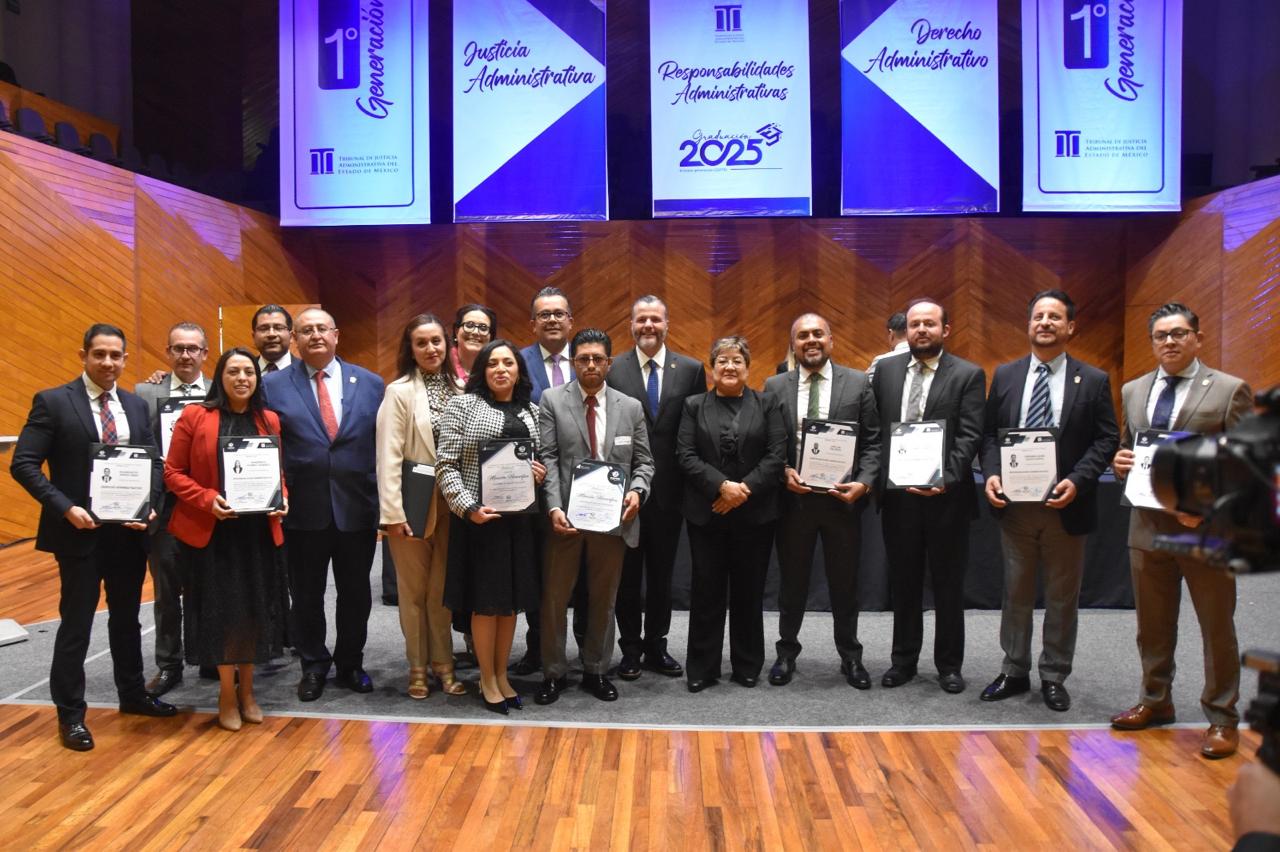 TOLUCA, Estado de México. – “El saber es poder, pero el verdadero poder está en servir”, aseguró Hilda Salazar Gil, Secretaria de la Contraloría, al encabezar la ceremonia de graduación de la primera generación del Centro de Formación y Profesionalización del Tribunal de Justicia Administrativa del Estado de México (TRIJAEM).