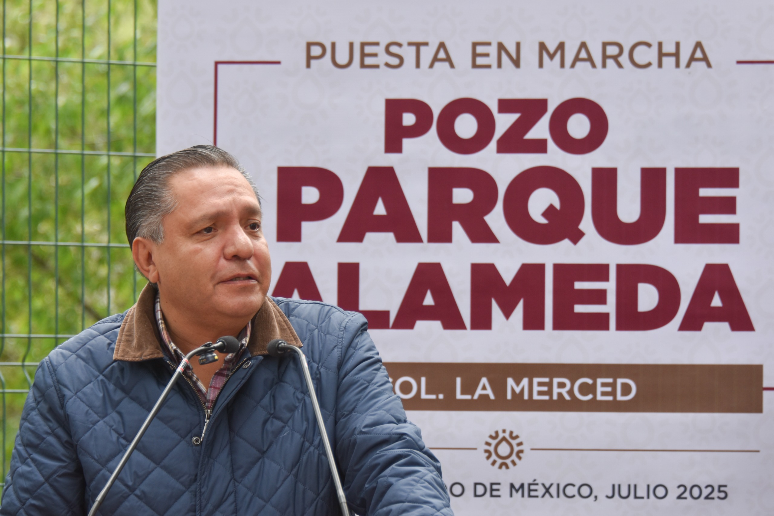 Acompañado del Secretario General de Gobierno del Estado de México, Horacio Duarte Olivares, el alcalde destacó que este pozo forma parte de los 21 rehabilitados y perforados a entregar en abril del 2026, para reducir la dependencia al Sistema Cutzamala y dar cobertura integral al municipio.