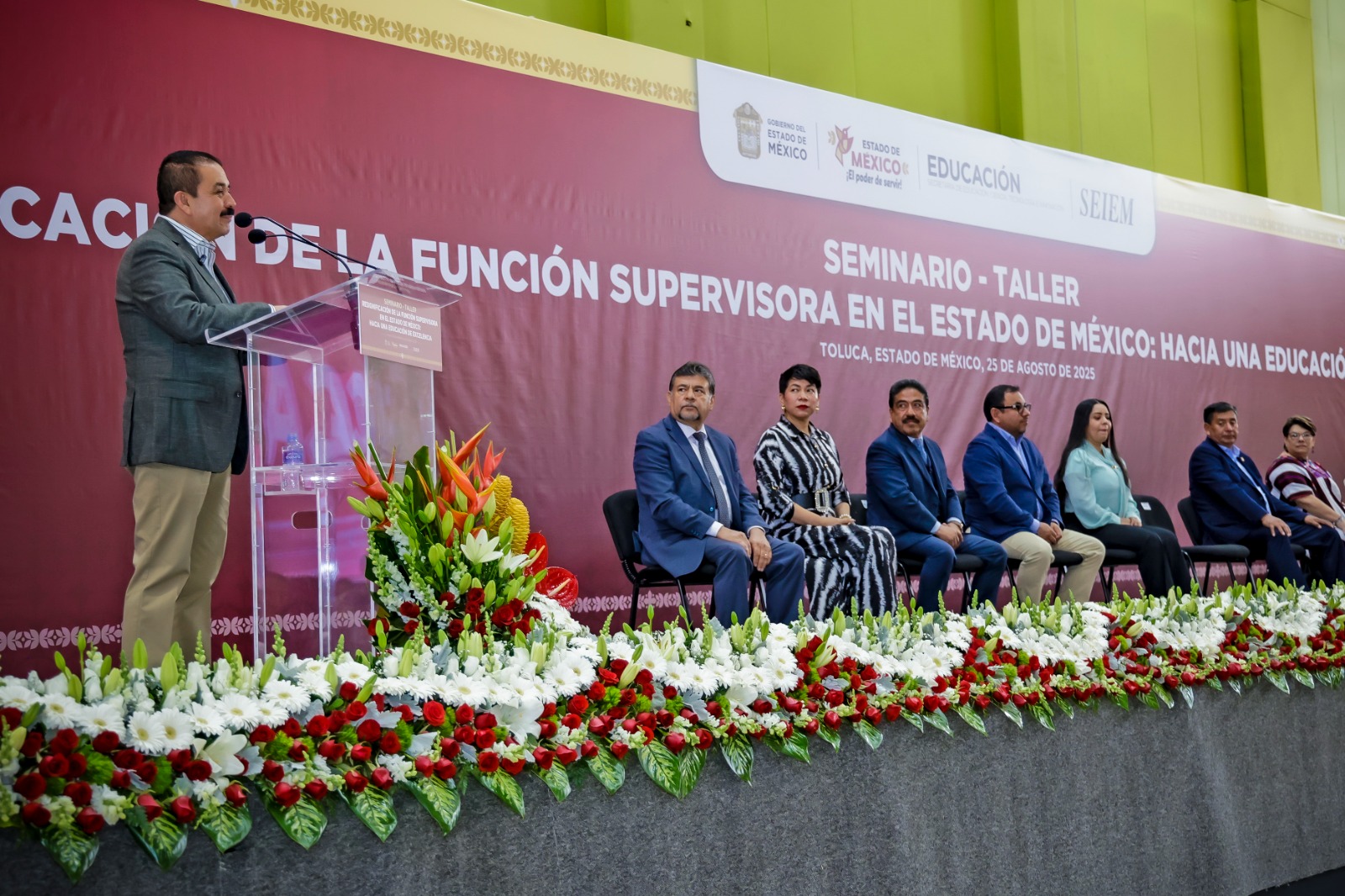 TOLUCA, Estado de México.– De cara al próximo ciclo escolar 2025-2026 y para fortalecer la labor de supervisoras y supervisores escolares, el Gobierno del Estado de México realizó la primera fase de un Seminario-Taller que abordó el rol de estas figuras como agentes de liderazgo pedagógico, acompañamiento técnico y transformación institucional desde el territorio.