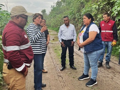 Durante su recorrido, la Maestra Delfina Gómez Álvarez constató el avance de los trabajos destinados a evitar desbordamientos e inundaciones que podrían afectar a las comunidades cercanas.