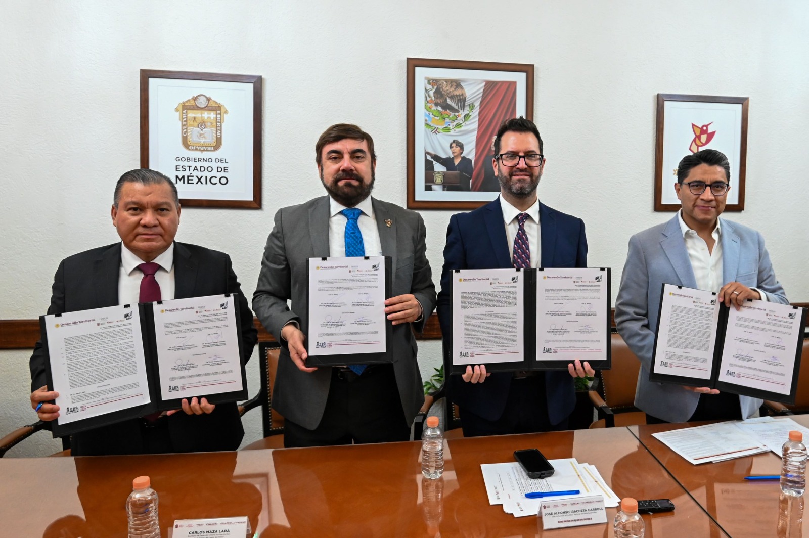 El primer convenio fue signado entre el Instituto Nacional del Suelo Sustentable (INSUS) y el Instituto Mexiquense de la Vivienda Social (Imevis). Este acuerdo permitirá identificar zonas prioritarias, determinar usos de suelo, elaborar padrones de beneficiarios y coadyuvar en la entrega de títulos o escrituras debidamente inscritos en el Registro Público de la Propiedad.