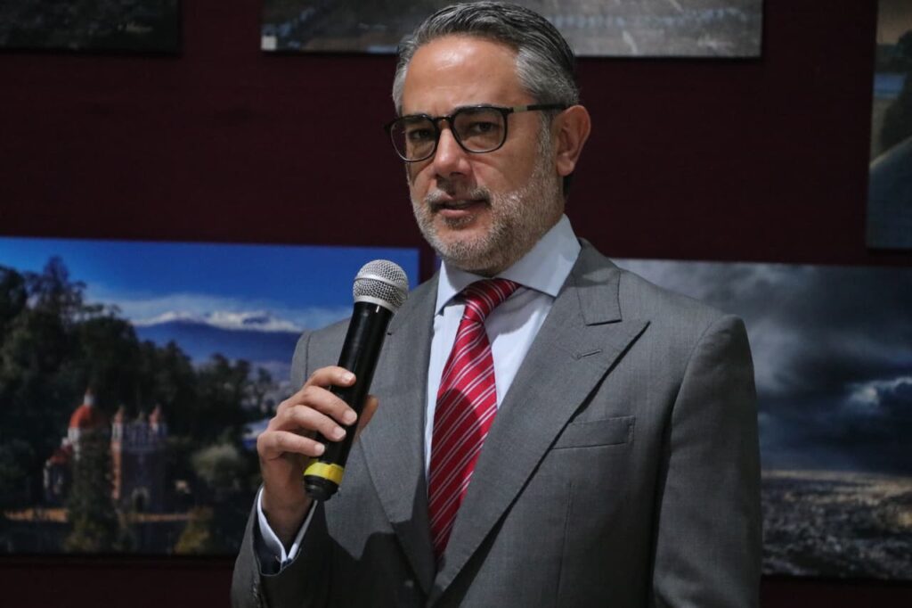 Pablo Fernández de Cevallos González, coordinador parlamentario del Partido Acción Nacional en la LXII Legislatura, inauguró la exposición de fotográfica de Mario Vázquez Torres, que captura paisajes urbanos del Valle de Toluca con drones al atardecer.