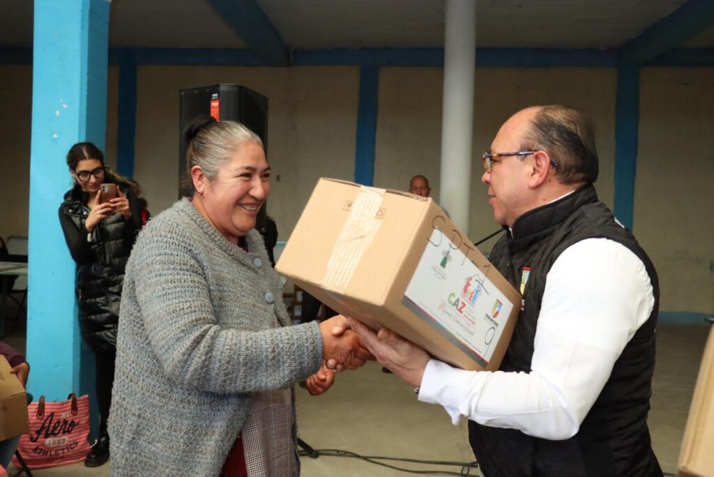 Zinacantepec, Estado de México.- Ya está en marcha la entrega de Canastas Alimentarias del municipio (CAZ), donde se benefician de manera directa más de tres mil 500 familias que viven en condición de pobreza y no tienen acceso a una alimentación adecuada en todo el territorio municipal.