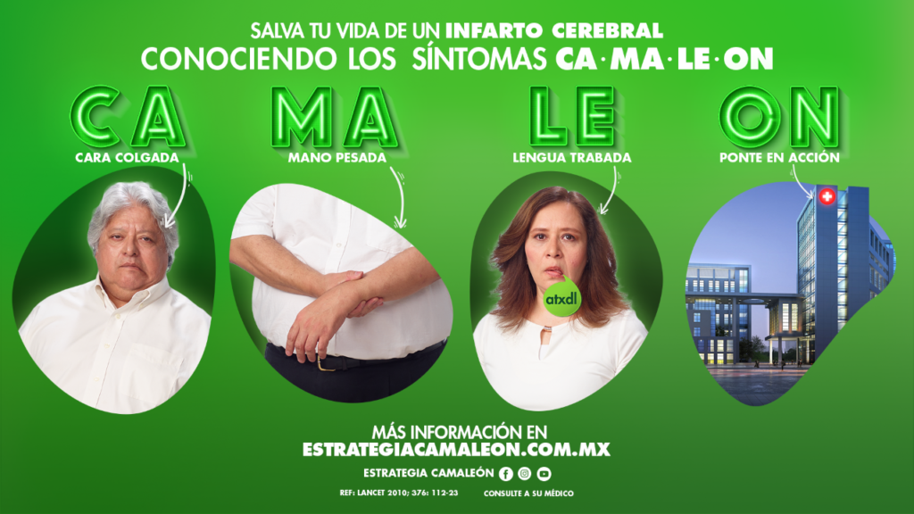 Dijo que dicha campaña de promoción a la salud, que está disponible de manera gratuita al público a través de la fanpage de Facebook @estrategiacamaleon y la página www.infartocerebral.com.mx, ha sido muy exitosa y cada año “procuramos tanto aumentar el número de instituciones hospitalarias habilitadas para atender la emergencia médica, como actualizar visualmente la imagen para incrementar su poder de recordación, sobre todo en quienes tienen mayor riesgo debido a la pandemia de COVID-19 por la que estamos atravesando”.
