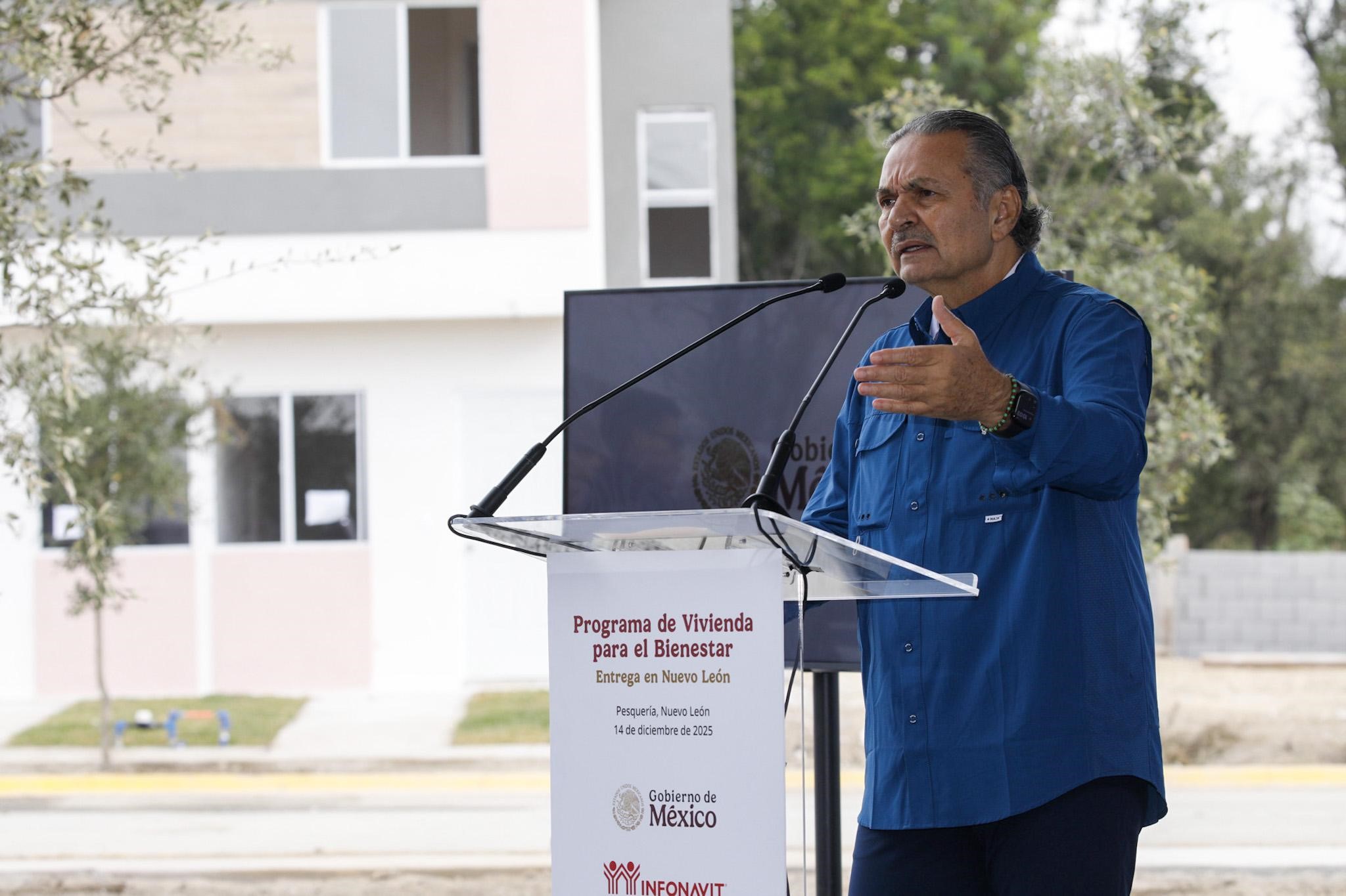 En el caso de Nuevo León, informó que ya se están construyendo 11 mil viviendas, en 11 fraccionamientos de los municipios de Pesquería, Juárez, General Escobedo, García, Cadereyta, Ciénega de Flores y Sabinas Hidalgo. “Y a partir del primer trimestre del próximo año, vamos por 6 mil 800 viviendas más”, dijo.