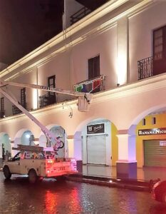 Servidores públicos adscritos a la dependencia local adornan y visten de verde, blanco y rojo las calles, avenidas y accesos a la capital a fin de conmemorar el mes patrio. Trabajan en diversos horarios para colocar poco más de 160 adornos luminosos, que podrán ser apreciados por visitantes y toluqueños.