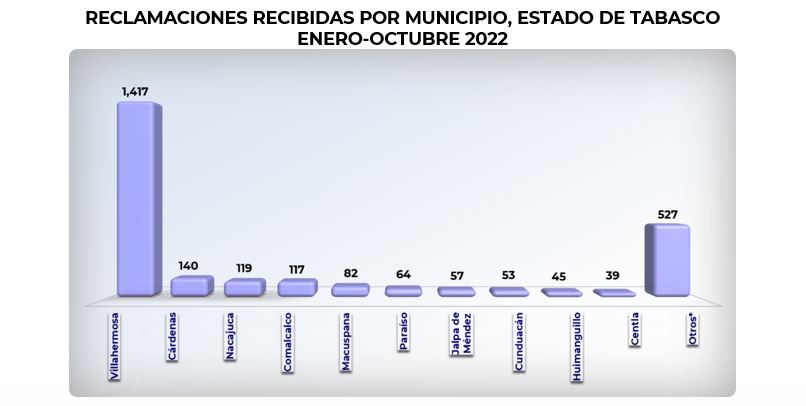 - El municipio de Villahermosa fue el que mayor número de reclamaciones registró: 53.3% del total.
