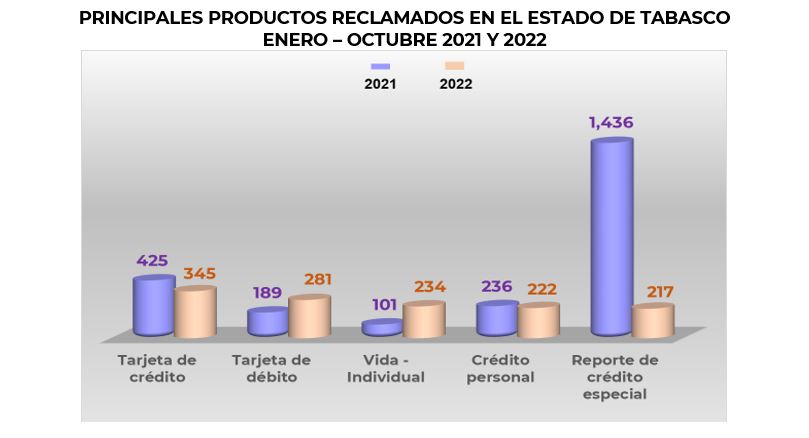 En este periodo, de los cinco principales productos, vida – individual y tarjeta de débito mostraron un incremento en sus reclamaciones, destacando vida – individual respecto al mismo periodo de 2021, de 131.7%.