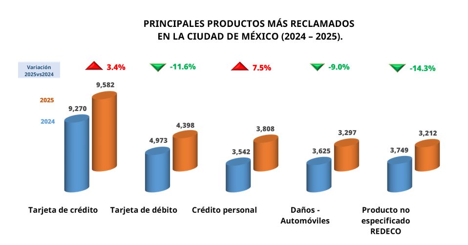 Durante el 2025, las quejas se concentraron principalmente en los consumos no reconocidos, el amenazar, ofender o intimidar al deudor, familiares, compañeros de trabajo y/o cualquier otra persona que no tenga relación con la deuda y realizar gestiones de cobro, negociación o reestructuración a personas que no son el usuario, causas que en conjunto representaron 26.3% del total de reclamaciones registradas en la entidad.
