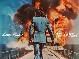 La portada de ‘Black & Blues’ de Louie Rubio es una continuación de portadas en el mismo tema donde la cámara sigue detrás del artista. Como ejemplo: para el sencillo ‘Echo’ está en un túnel submarino y para ‘Black & Blues’ aparece el músico caminando en un traje azul de franela (como dice la letra en el coro) hacia un yate en llamas