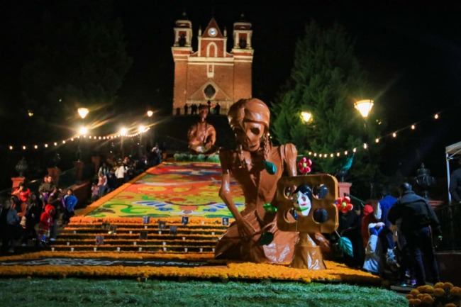 La ofrenda monumental se complementa con altares creados por más de 20 escuelas, delegaciones municipales, instituciones públicas, asociaciones y organizaciones locales, que sumaron esfuerzos para enaltecer esta festividad.