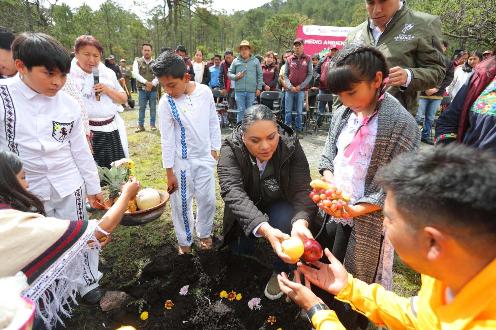 TEMOAYA, Estado de México. – Bajo el lema “Sembrando Raíces, Honrando Saberes”, el Gobierno del Estado de México, encabezado por la Maestra Delfina Gómez Álvarez, realizó una jornada de restauración forestal con la participación de integrantes de la comunidad otomí del municipio de Temoaya.