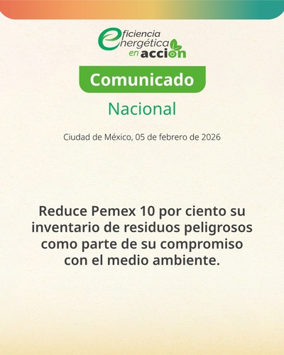 Al cierre de 2025, Petróleos Mexicanos (Pemex) logró reducir 10 por ciento su inventario de residuos peligrosos, en comparación con 2024, como resultado del refuerzo de su control operativo y de un manejo integral conforme al marco regulatorio ambiental vigente.