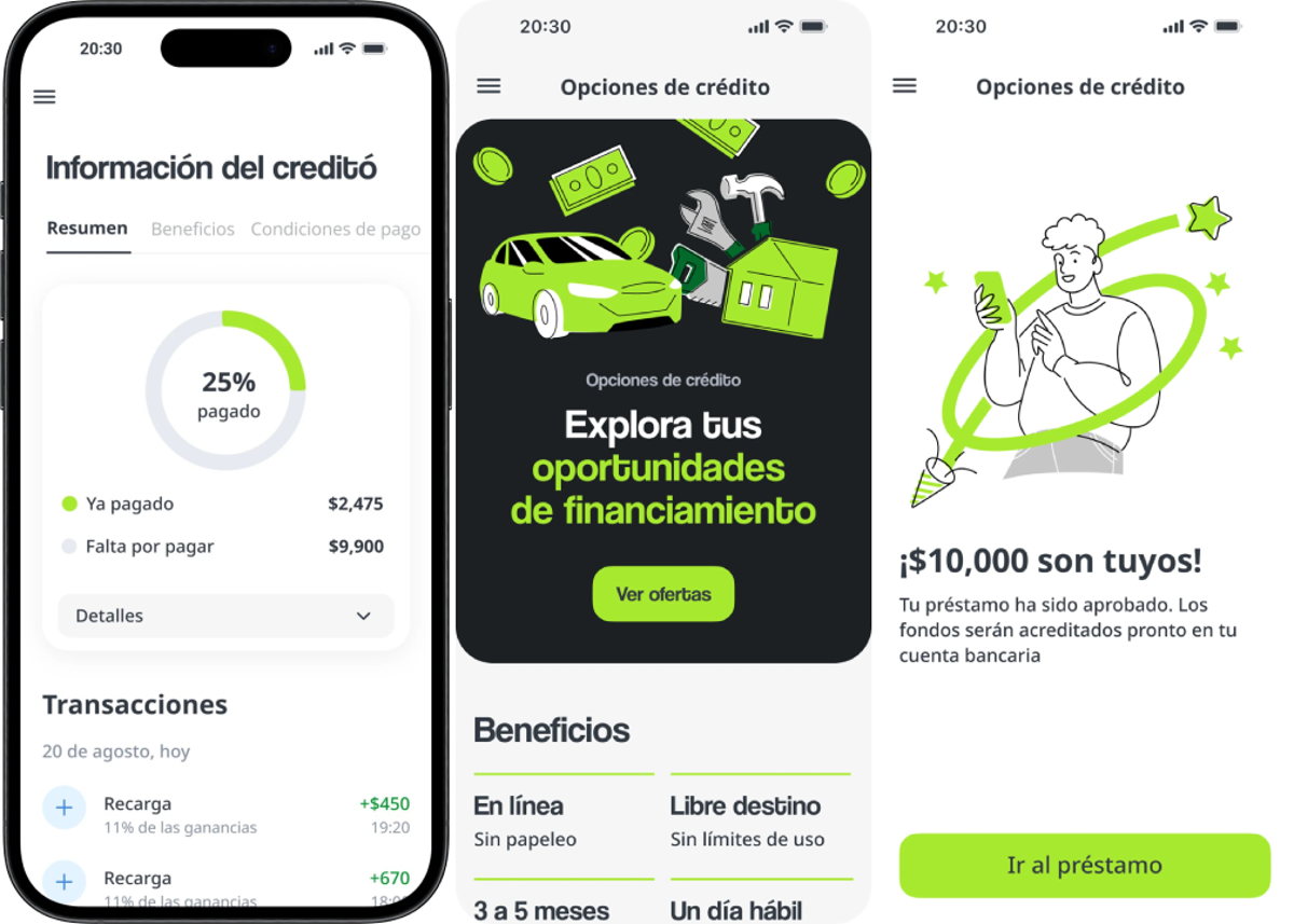 - De hecho, en los recientes años los créditos y préstamos digitales se han diversificado y personalizado para usuarios, emprendedores y conductores.