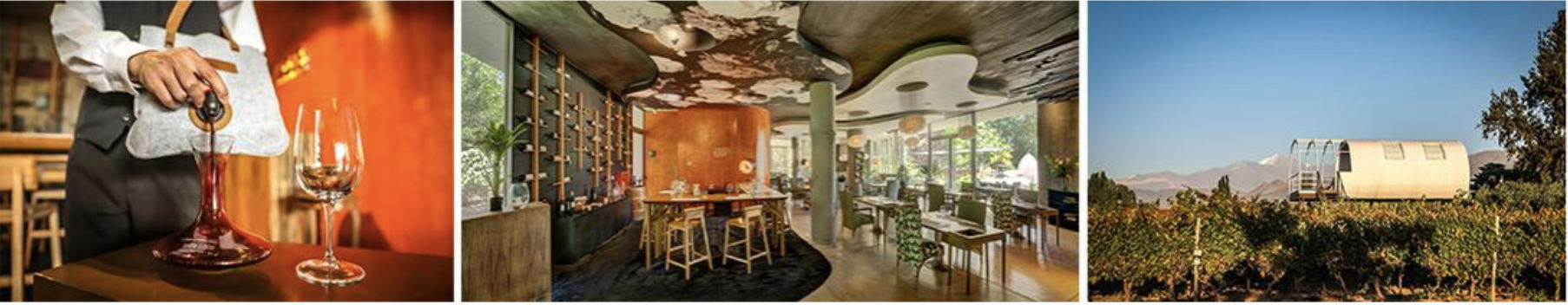 Ubicado en la región vinícola de Luján de Cuyo, Mendoza, «La Tierra del Malbec», se encuentra inmerso entre exuberantes viñedos con la impresionante cordillera de los Andes y sus picos nevados como fondo. De arquitectura y paisajismo vanguardista, sus 24 habitaciones ofrecen diferentes diseños, destacando los ocho Vineyard Lofts que dan la impresión de flotar sobre los viñedos y, “flotando” aún más alto, el Limited Edition, una estructura tubular con techo retráctil que permite observar el cielo estrellado. En cuanto a gastronomía, su restaurante destaca los sabores locales y las etiquetas de las mejores bodegas de la región. Un sommelier de la casa ofrece catas y el personal del hotel, 100% local, se distingue por su excepcional atención y genuina amabilidad. Sin olvidar su propuesta de bienestar con el auténtico hamam, único en toda Latinoamérica, con diferentes circuitos guiados y tratamientos de vinoterapia. A tan solo 30 minutos del Aeropuerto Internacional de Mendoza (MDZ) y de la capital de la ciudad.